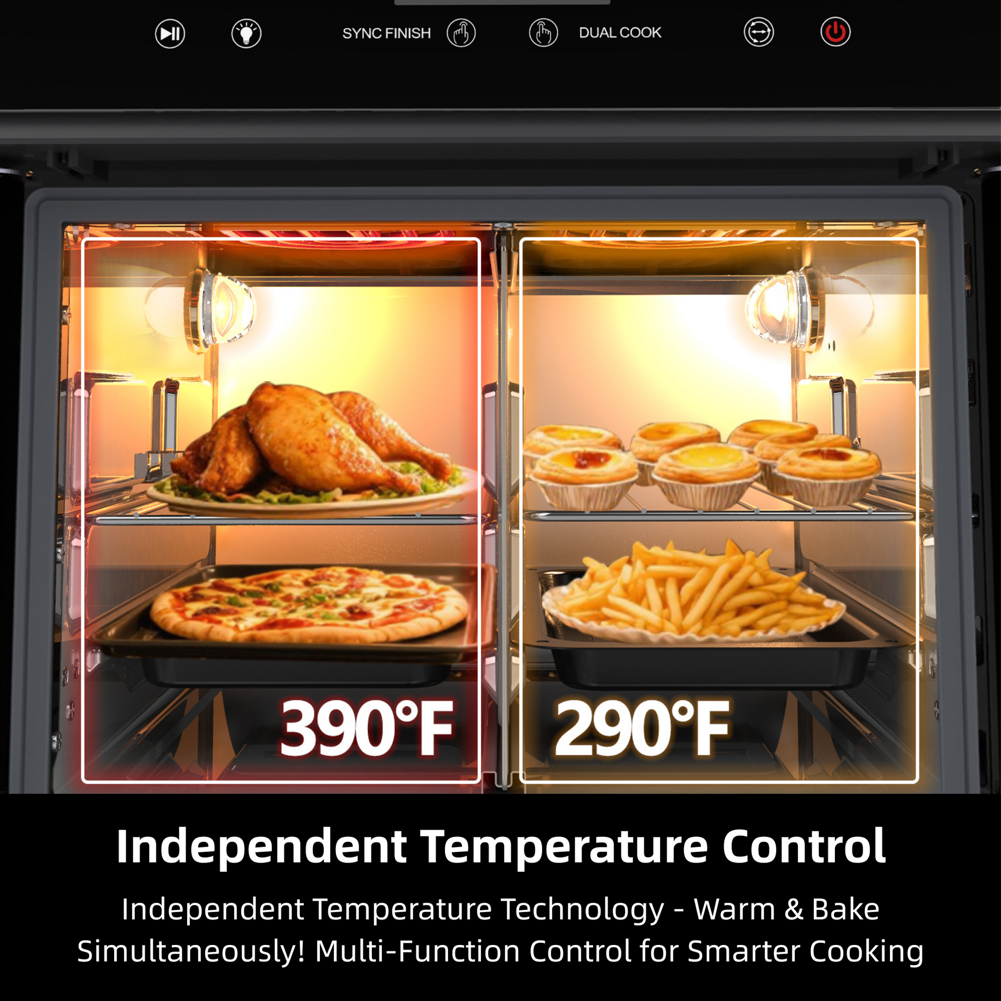 - ใ๐ฏ๐ฒ๐ฌยฐ ๐ง๐๐ฟ๐ฏ๐ผ ๐๐ถ๐ฟ ๐๐ฟ๐ถ๐๐ฝ ๐ง๐ฒ๐ฐ๐ต๐ป๐ผ๐น๐ผ๐ด๐ใ: Get the perfect crispy texture, effortlessly. Our toaster oven air fryer combo uses a dual-speed system to circulate heat 360ยฐ around your food, locking in juices while creating a deliciously golden, crispy exterior. Powered by efficient infrared heating, it cooks evenly and up to 40% faster than conventional ovens, saving you time and energy.